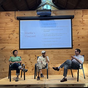 Professor Jesse M. Keenan discusses his new book North: The Future of Post-Climate America at Stillpoint on Martha’s Vineyard. Following the book talk, Commissioner Ben Robinson and climate change coordinator Sakiko Isomichi of the Martha’s Vineyard Commission led an audience-driven dialogue on future climate challenges and opportunities facing the island.
