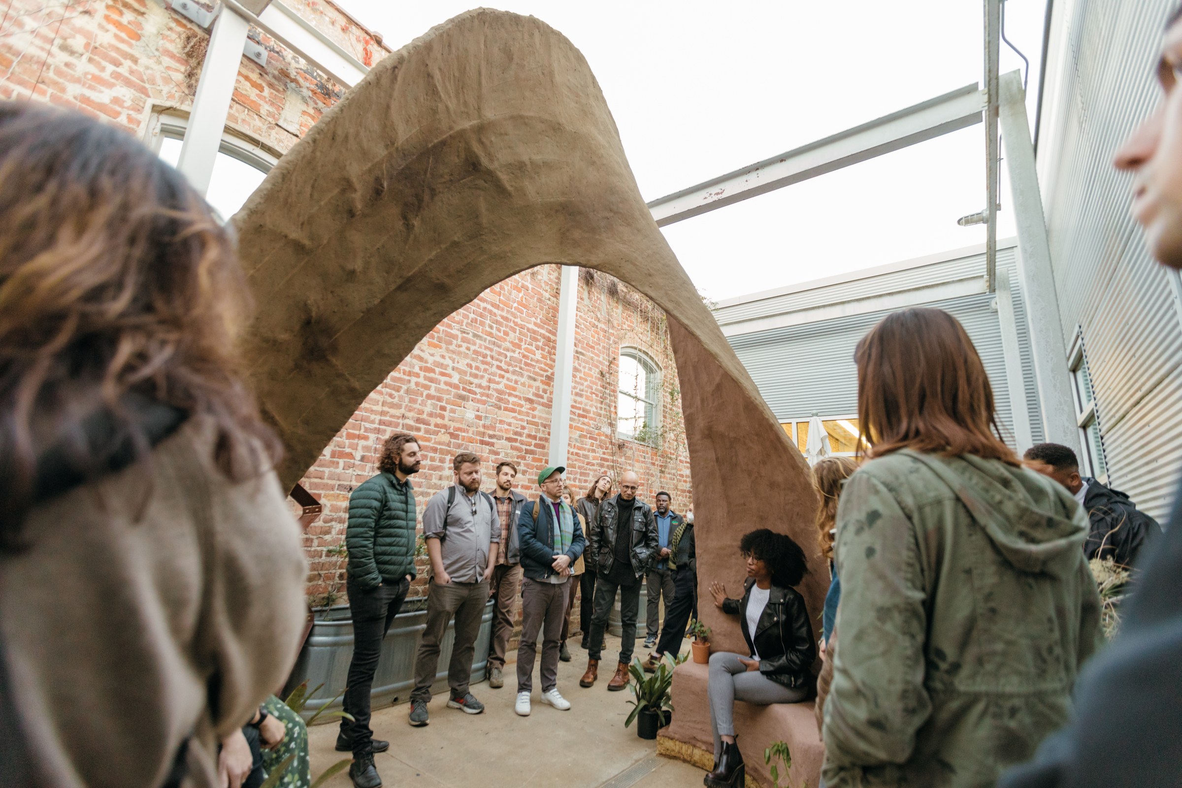 Students explored hyper-local material and manufacturing, grounding investigations in the work of our partner organization (gardening and advocacy organization, Solitary Gardens). The studio developed new material composites using bio-based byproducts of local industry, concluding in the design and fabrication of two small scale structures